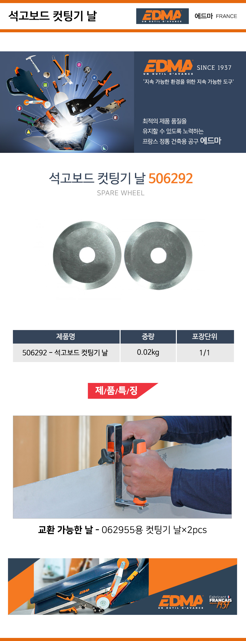 EDMA 석고보드 컷팅기날 506292 석고보드절단기날 에드마 공구몰