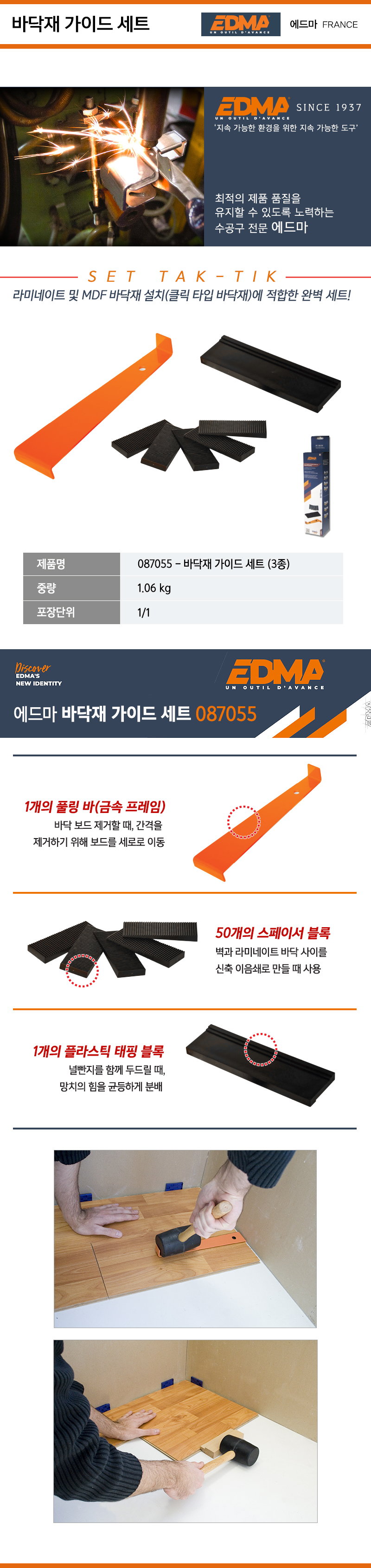 EDMA 바닥재가이드세트 087055 마루판, 바닥재 설치용 에드마 공구몰