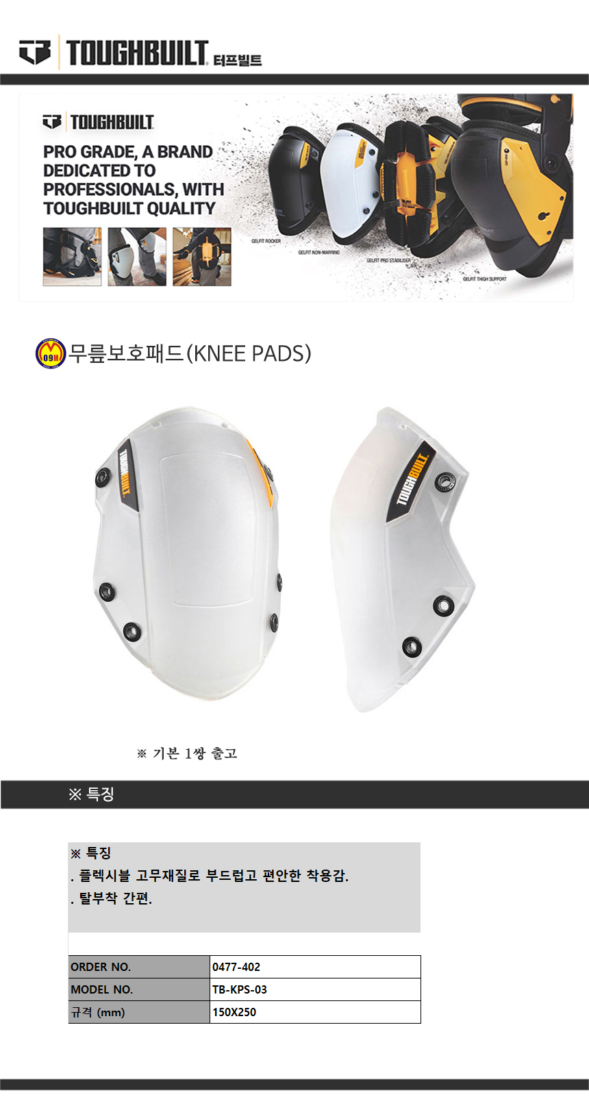 터프빌트 무릎보호대 TB-KP-G3 (1쌍) 고무 / 탈착불가 (TOUGH BUILT) 0477396