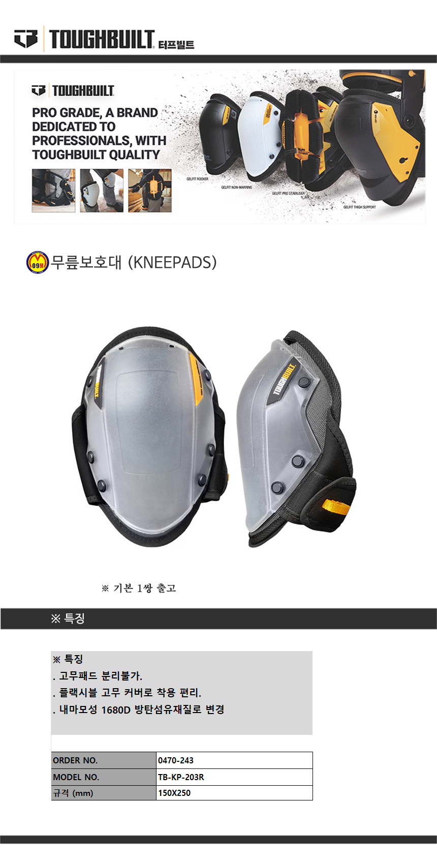 터프빌트 무릎보호대 세트 TB-KP-G203 (1쌍) (TOUGH BUILT) 고무 / 탈부착가능 0477397