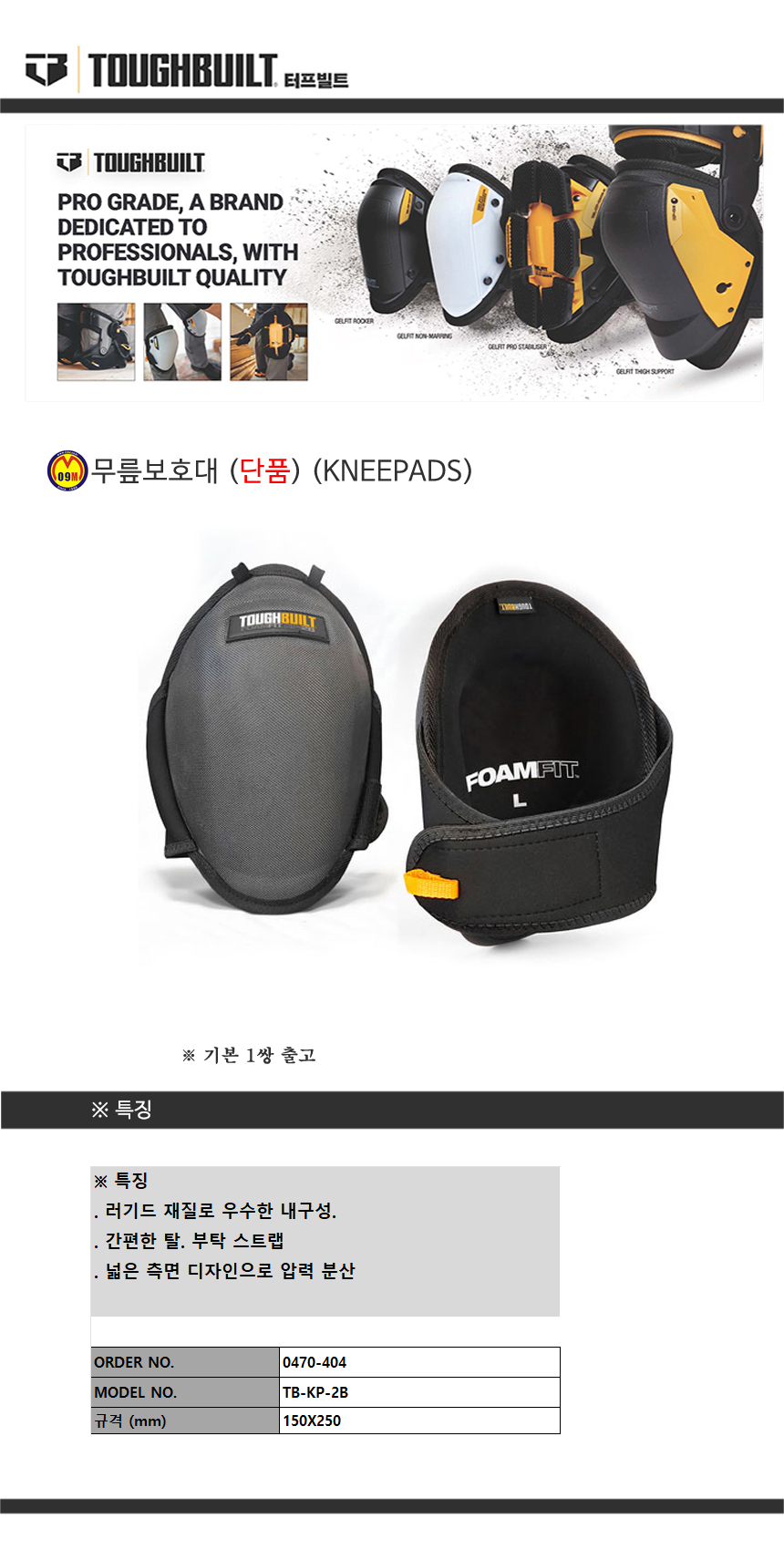 터프빌트 무릎보호대 세트 TB-KP-G203 (1쌍) (TOUGH BUILT) 고무 / 탈부착가능 0477397