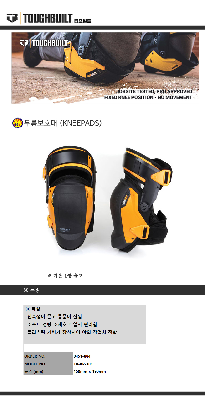 터프빌트 무릎보호대(단품) TB-KP-2B (1쌍) 기본 / 탈부착불가 (TOUGH BUILT)0477404