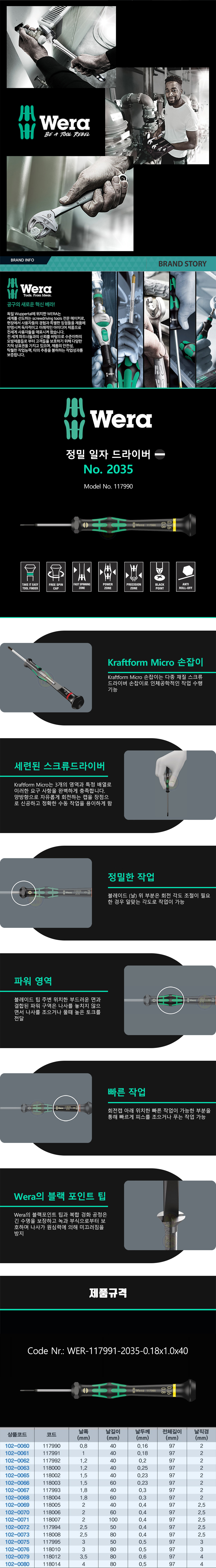 베라 정밀일자드라이버 No.2035 (0.8-4mm) 일자 소형 정밀드라이버 102-0065