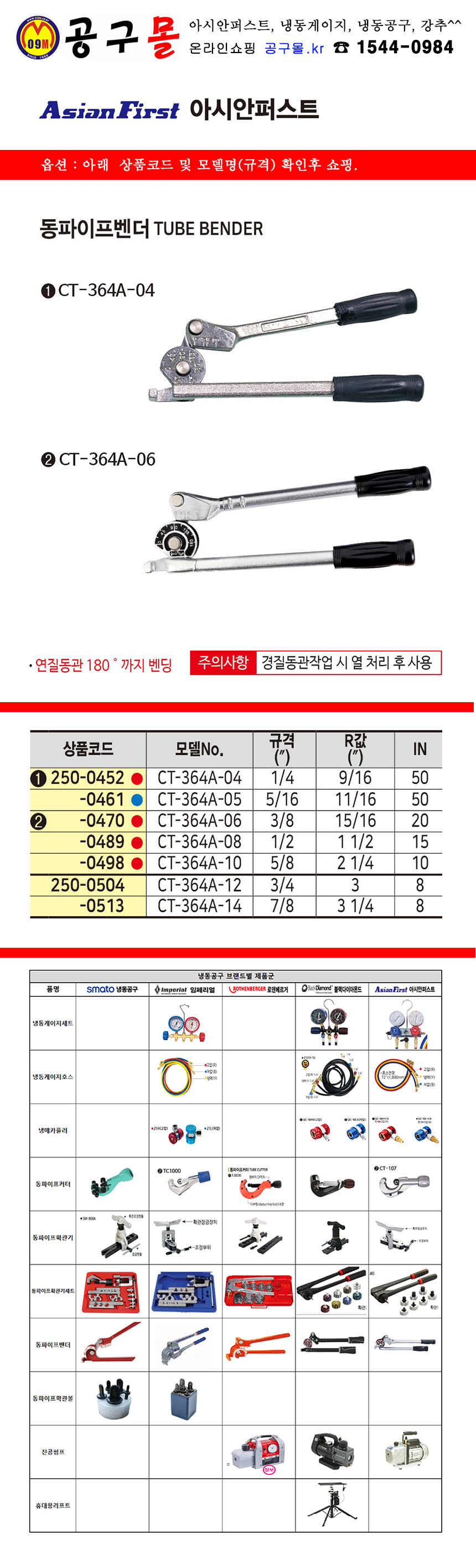 AsianFirst 동파이프벤더 CT-364A-10, CT-364A-12, CT-364A-14 공구몰, C250-0498