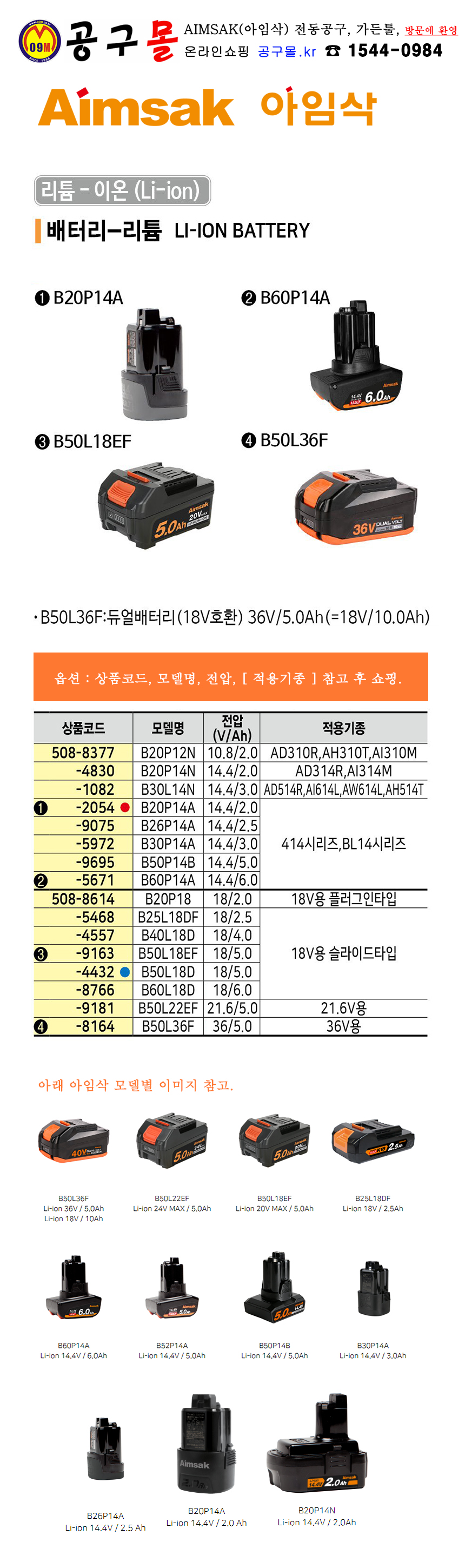 아임삭 배터리 B20P12N, B20P14N , B20P14A , AIMSAK, 공구몰, C 508-8377