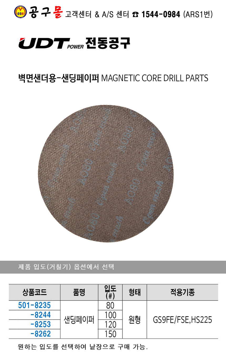 UDT 샌딩페이퍼(원형) 입도80-150 GS9FE/GS9FSE/HS225 전용 UDT,원형페이퍼, 벽면샌더기용, 공구몰,501-8235