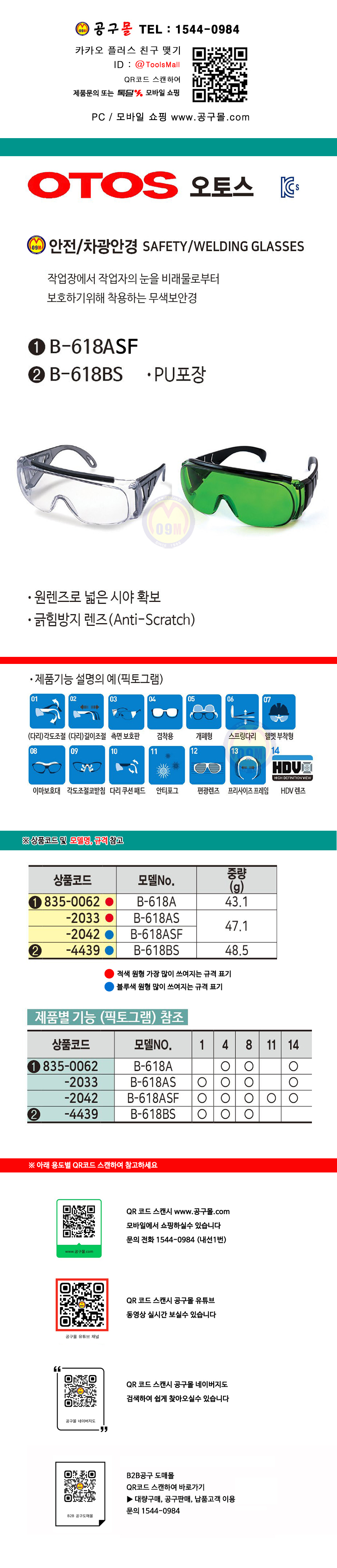 오토스 안전안경 B-618A/B-618AS OTOS, 보호안경, 835-0062