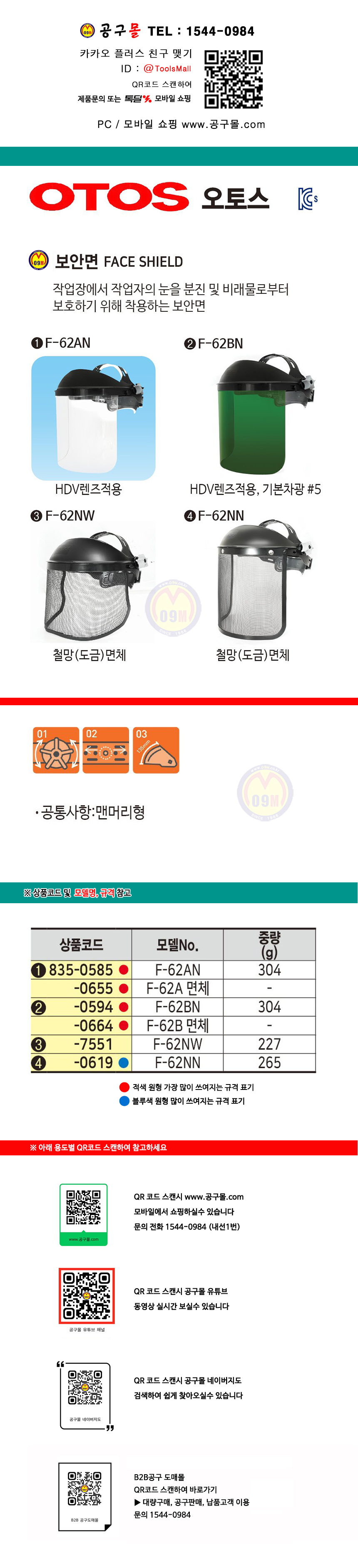 오토스 보안면 F-62AN/ F-62BN/ F-62B OTOS, 보호면, 835-0585
