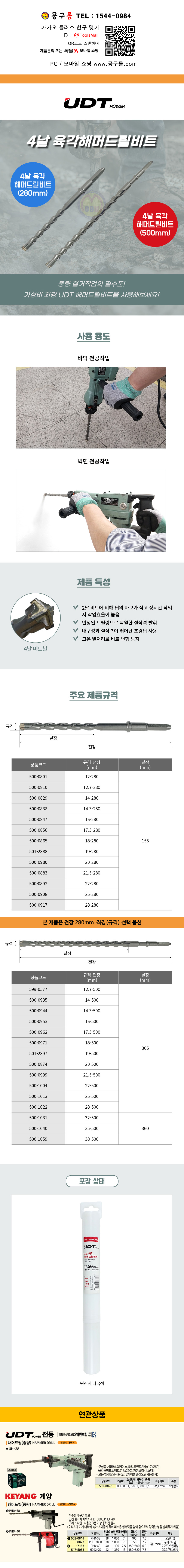 UDT 육각해머드릴비트 4날-280mm - 12mm-18mm 38해머드릴용 비트날 500-0801