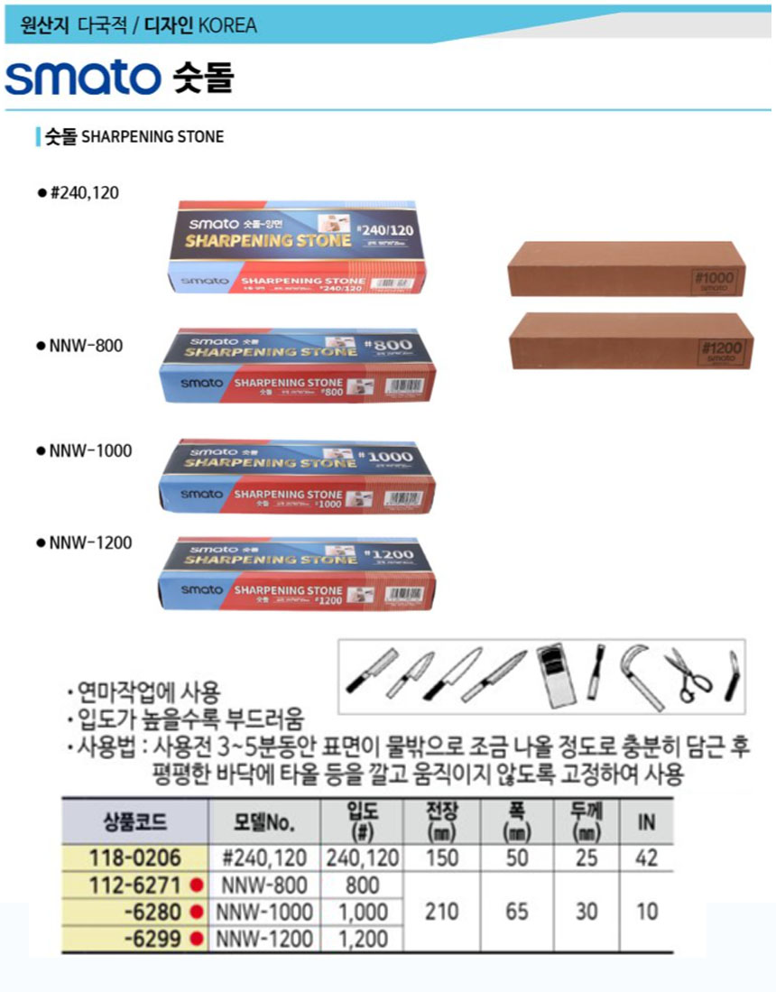스마토 숫돌 800/1000/1200번 연마숫돌, 칼갈이숫돌, 공구몰닷컴 112-6271