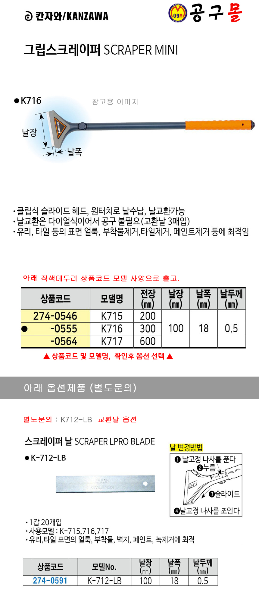 칸자와 그립스크레이퍼 K-715/ K-716/ K-717 KANZAWA,스크레이퍼,미니스크레퍼,공구몰