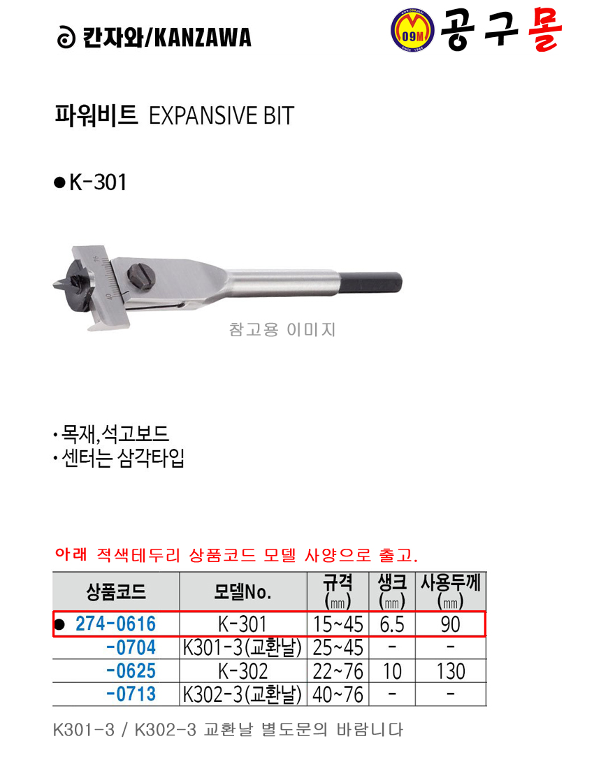 칸자와 목재 파워비트 K-301 / K-302 칸자와,KANZAWA,공구몰,목재자유길이,자유길이 274-0616