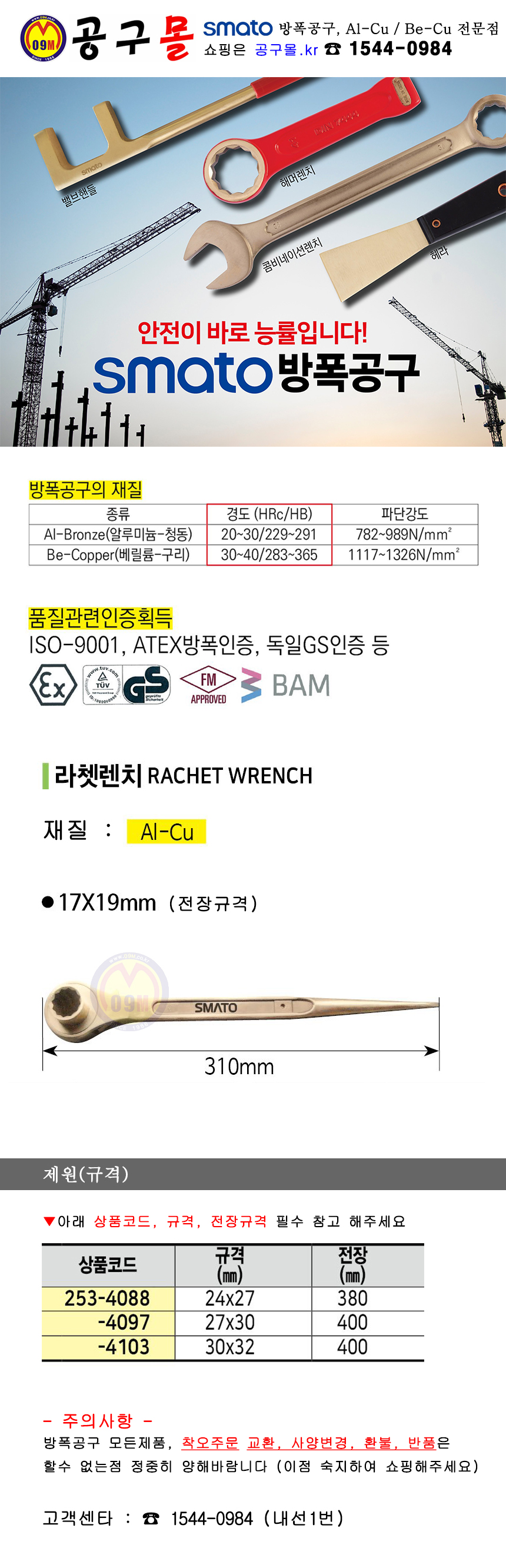세신 라쳇렌치(방폭) AL-CU 24x27mm - 30x32mm SESHIN BUFFALO, 방폭공구, 방폭렌치,253-4088