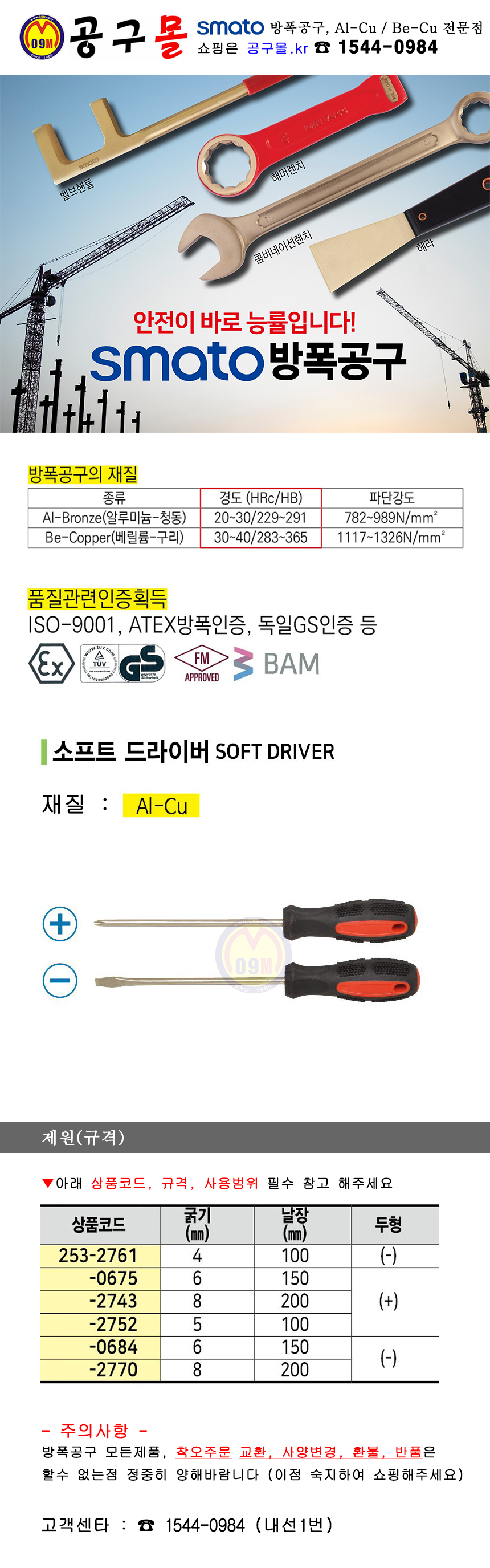 세신 (방폭)드라이버 BE-CU 4x100mm/8x200mm (십자/일자) SESHIN BUFFALO, 방폭공구, 공구몰 253-4680