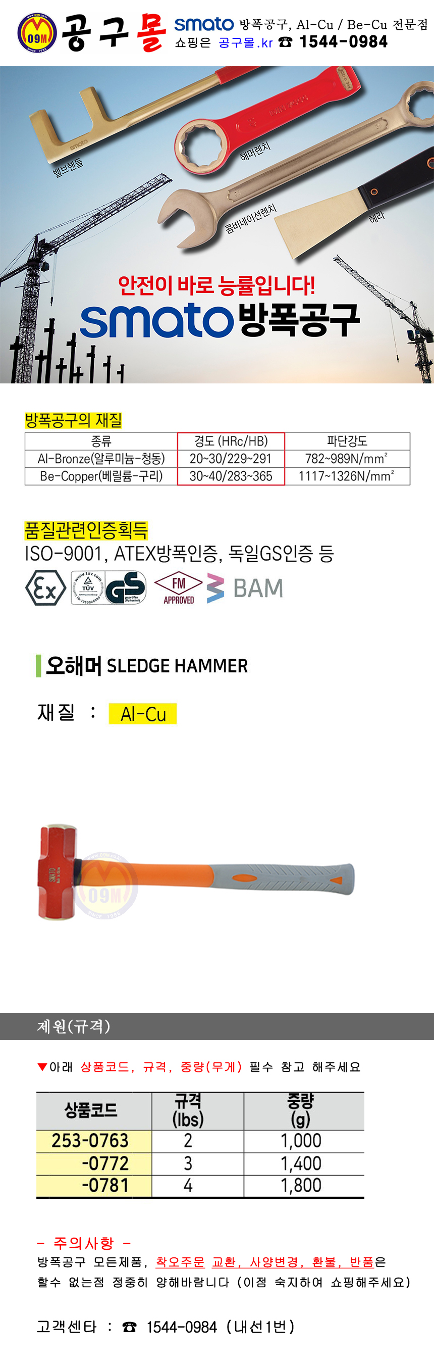 세신 오해머(방폭) AL-CU 2LBS - 4LBS SESHIN BUFFALO, 방폭해머, 방폭햄머, 방폭공구, 공구몰 253-0772