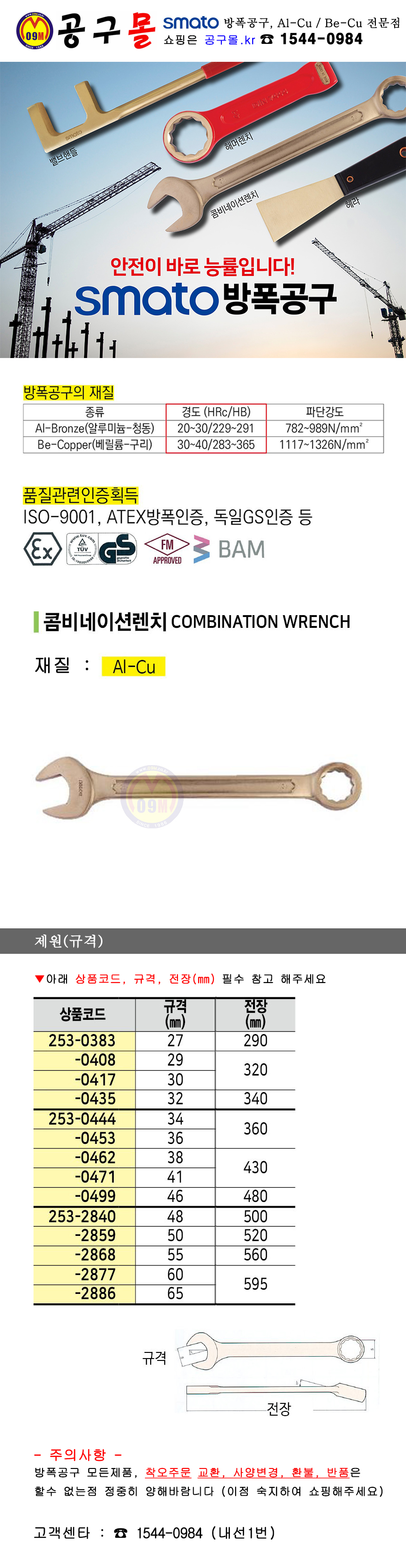 세신 콤비네이션렌치(방폭) AL-CU 27mm-38mm SESHIN BUFFALO, 방폭콤비스패너, 방폭렌치, 방폭공구,253-0435