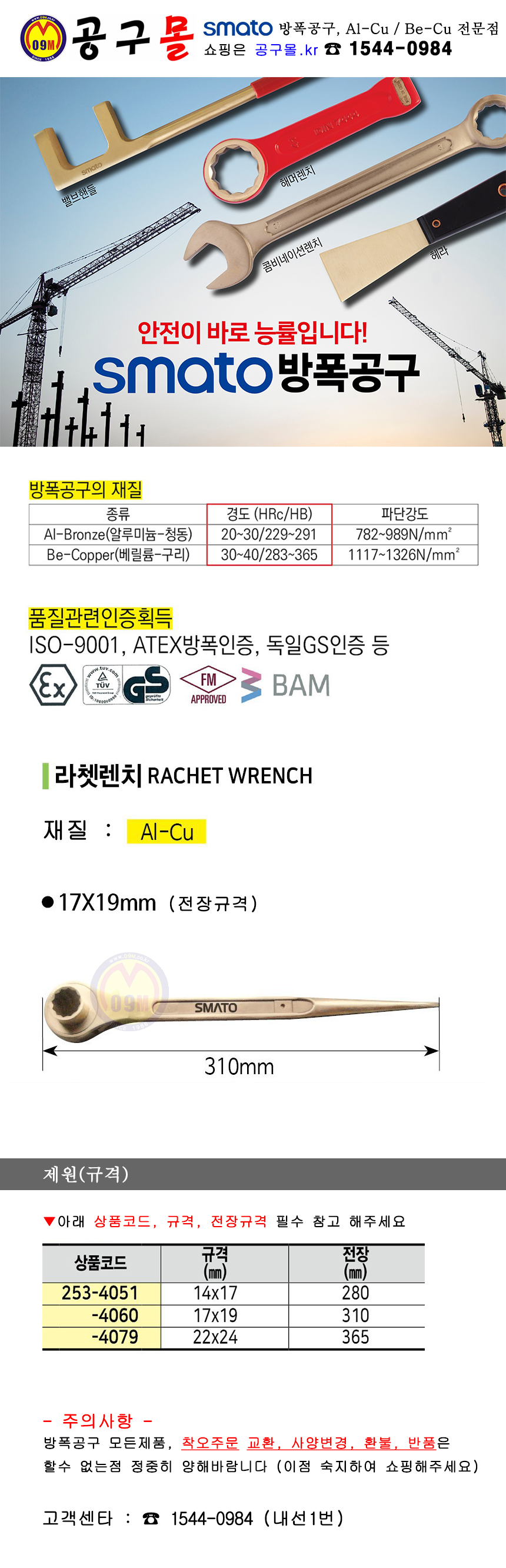 세신 라쳇렌치(방폭) AL-CU 14x17mm - 22mmx24mm, SESHIN BUFFALO, 방폭공구, 방폭렌치, 253-4051