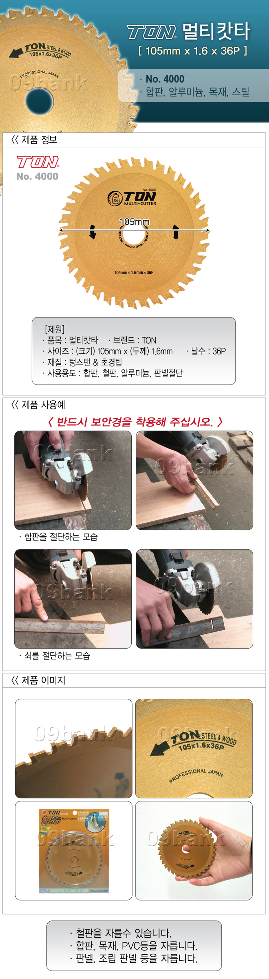 톤 멀티 원형톱날(목재/철재) 4-36T(15mm)/ 5-40T(15/ 22.3mm) TON 공구몰 2145-036