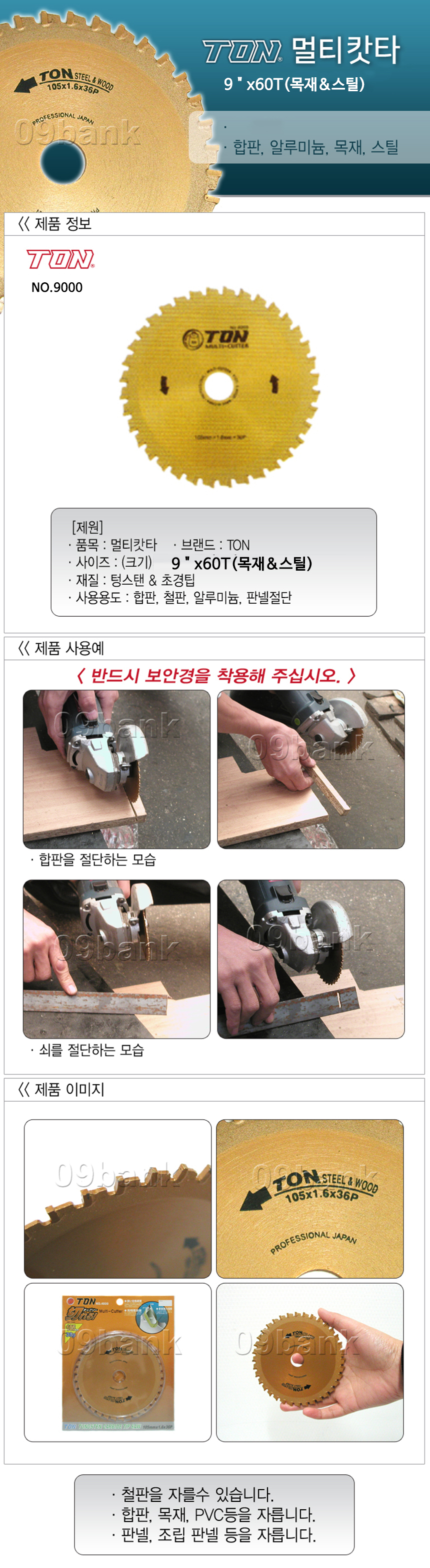 톤 멀티 원형톱날(목재/철재) 9-60T(25.4mm)/ 10-72T(25.4mm) TON 공구몰 2145-046