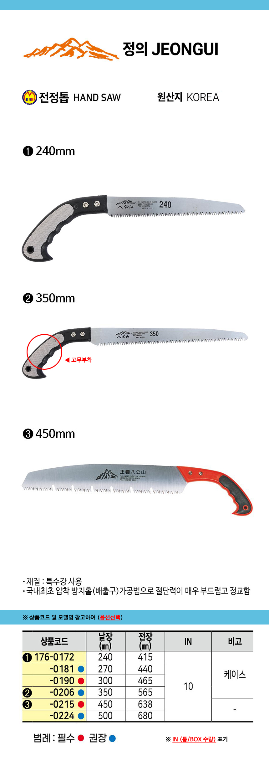 정의(대영) 전정톱 (고무부착) 350/ 450/ 500mm 국내산, 전지톱, 공구몰닷컴 176-0206