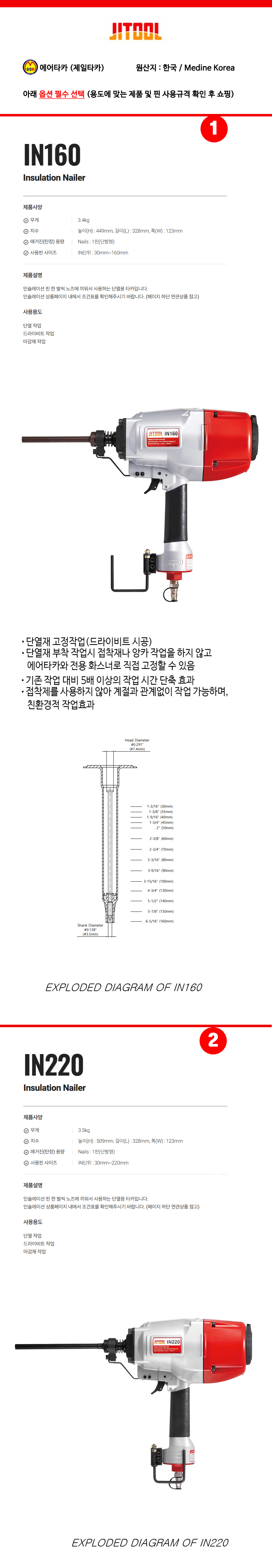 제일타카 에어단열재타카 IN160/ IN220 (핀30-220mm사용) 공구몰닷컴 631-2509