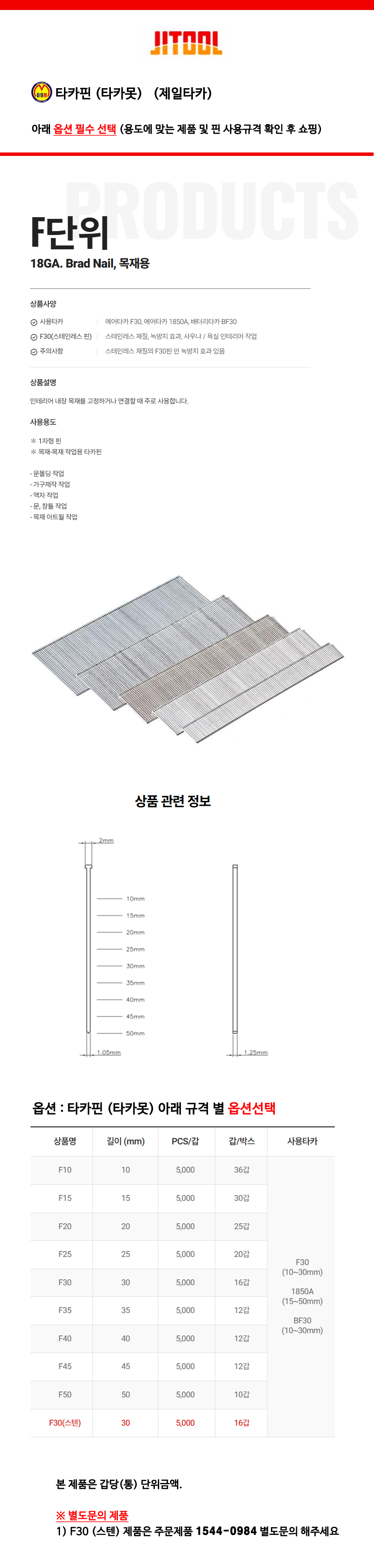 제일타카 타카핀(F30타카못) 1자 F타입 F20-F30 (5000PCS) 목재타카못 공구몰닷컴 631-0936