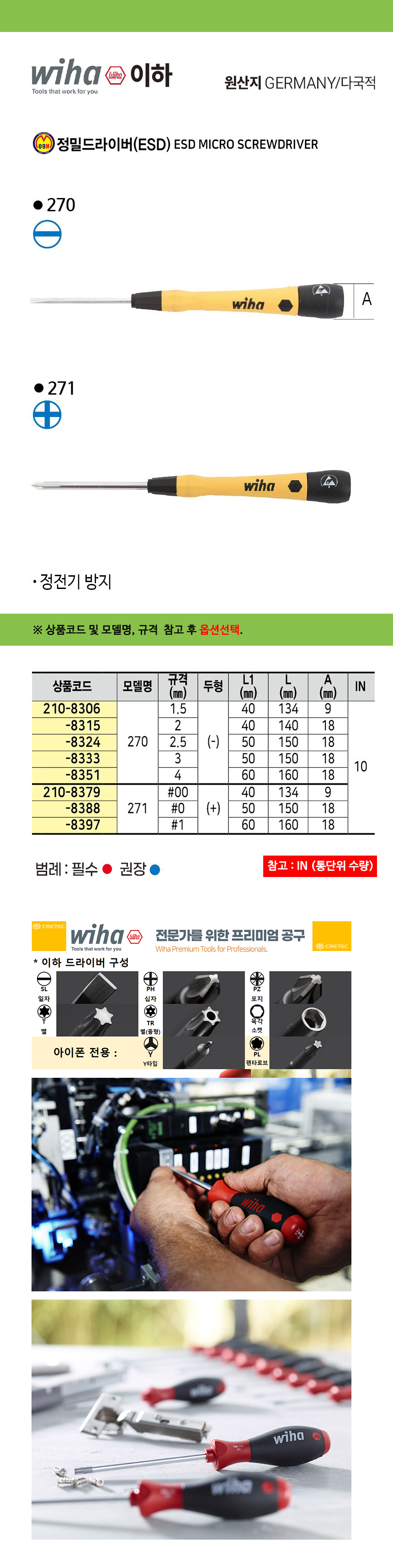이하 정밀드라이버(ESD) (270P/ 271P) 일자, 십자 드라이버 전정기방지, wiha 공구몰 210-8306