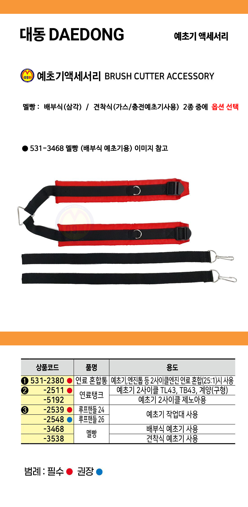 대동 예초기 멜빵 배부식(삼각), 견착식 (가스,충전예초기사용) 부품, 부속 공구몰 531-3468