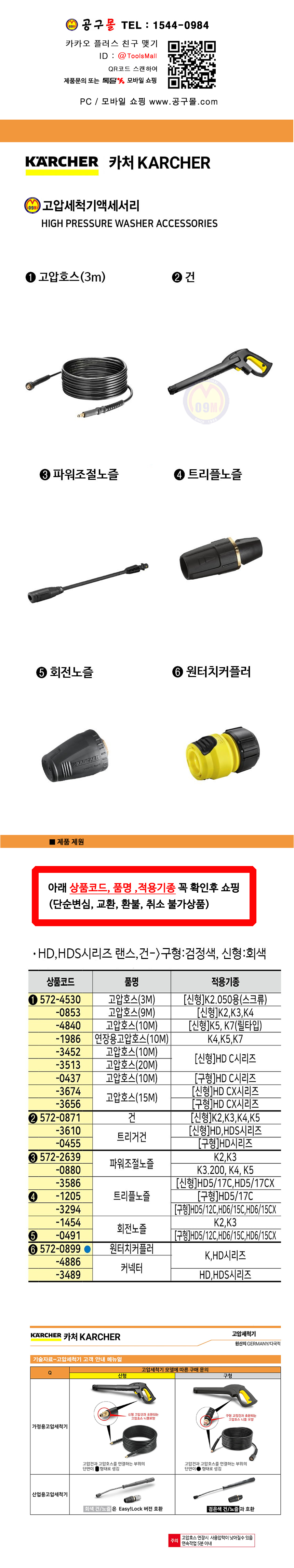 카처 고압호스 신형 HD C시리즈용 10M, 20M, 구형 HD C 10M, 신형 HD CX 15M, KARCHER, 공구몰 C572-3674