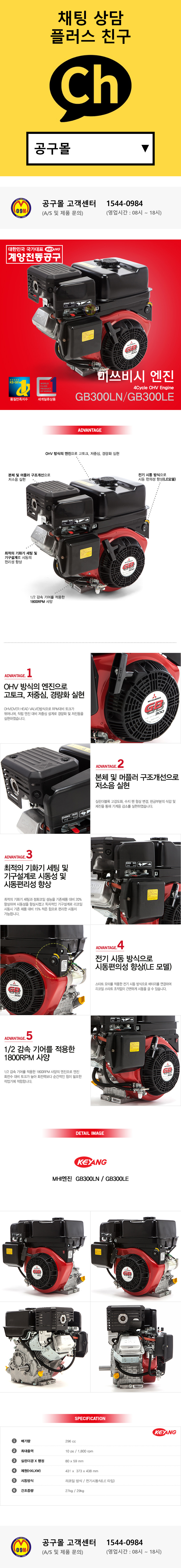 계양 4행정 미쓰비시 OHV엔진 GB300 (296CC 리코일, 전기시동) 4싸이클엔진 공구몰