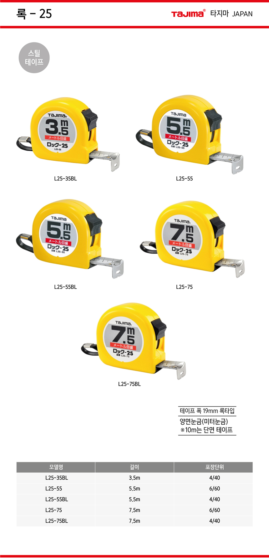 타지마 자동줄자 L25-75, L25-75BL (폭25mm-7.5M) TAJIMA 141402450251