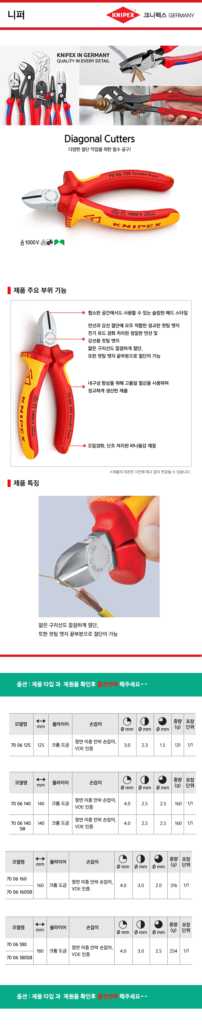 크니펙스 니퍼(절연) 70-06-125, 140, 140SB, 160, 160SB, 180, 180SB 1000V 절연니퍼, Knipex 독일공구, 공구몰 101001000087