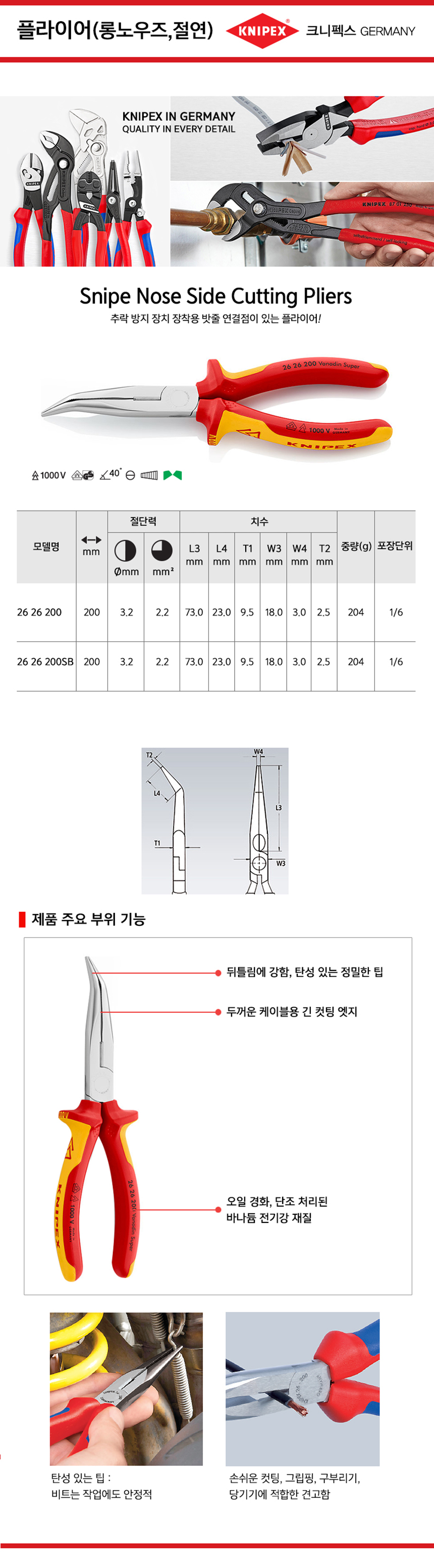 크니펙스 플라이어(롱노우즈,절연) 26-15-200, 26-15-200SB Knipex 독일공구, 공구몰 101001020087