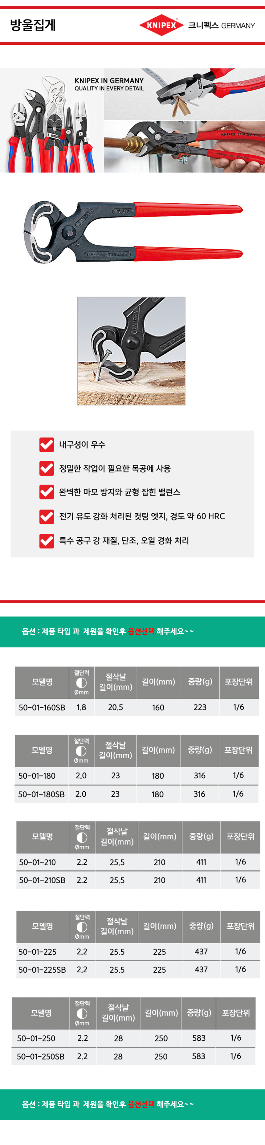 크니펙스 방울집게 50-01-160SB, 180SB, 210SB, 225SB, 250SB Knipex 독일공구, 독일수공구 공구몰추천 101001020248