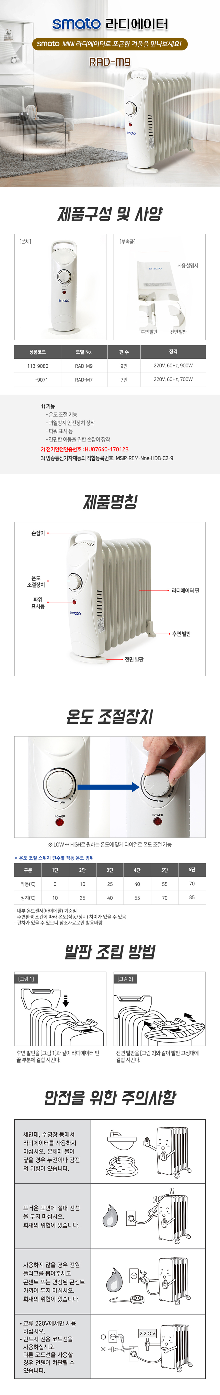스마토 라디에이터(미니) RAD-M7, M9 smato, 전기히터 공구몰 W113-9071
