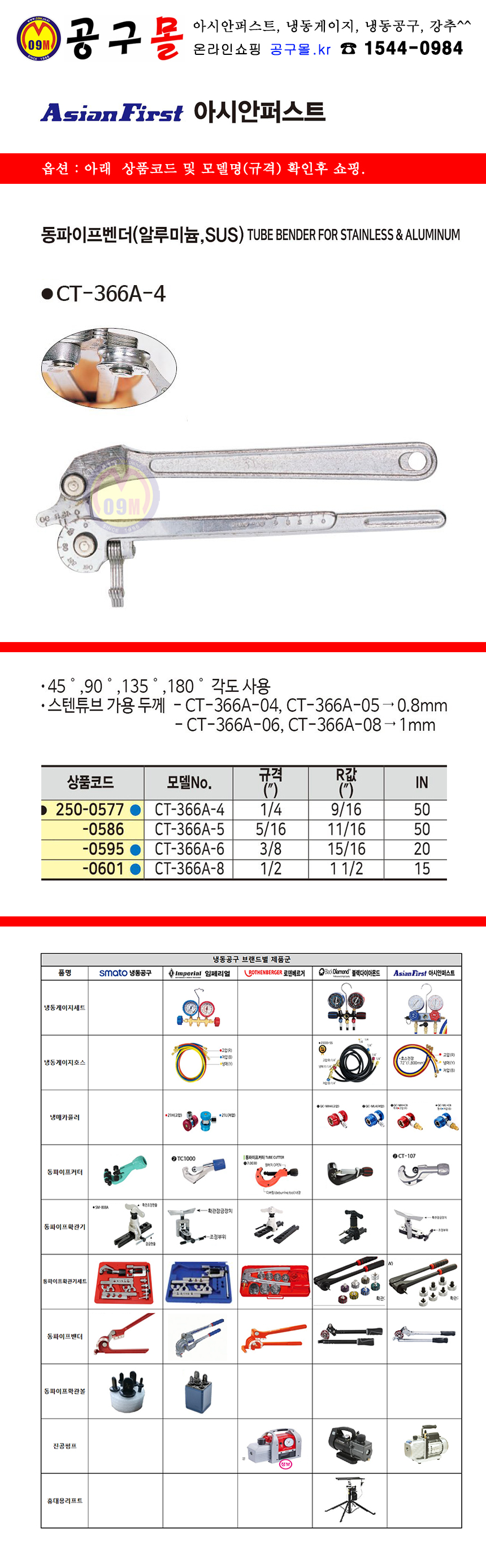 AsianFirst 동파이프벤더 (AL,SUS) CT-366A-04, CT-366A-05 공구몰, C250-0577