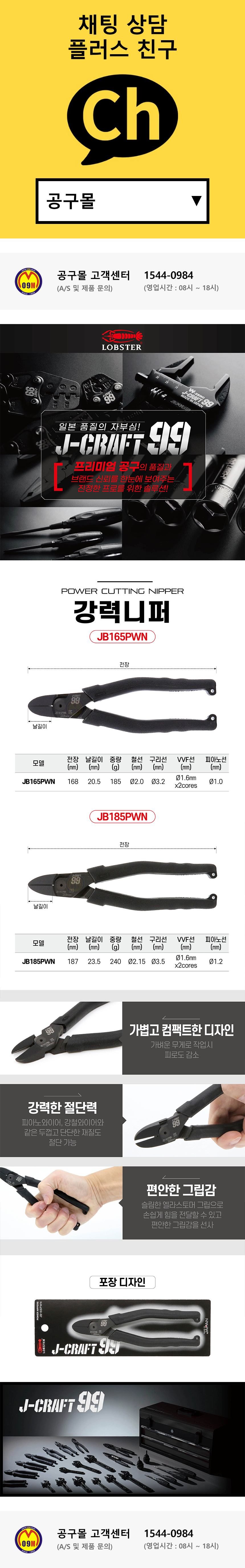 로보스터 CRAFT99 블랙강력니퍼 JB165PWN JB185PWN 니퍼