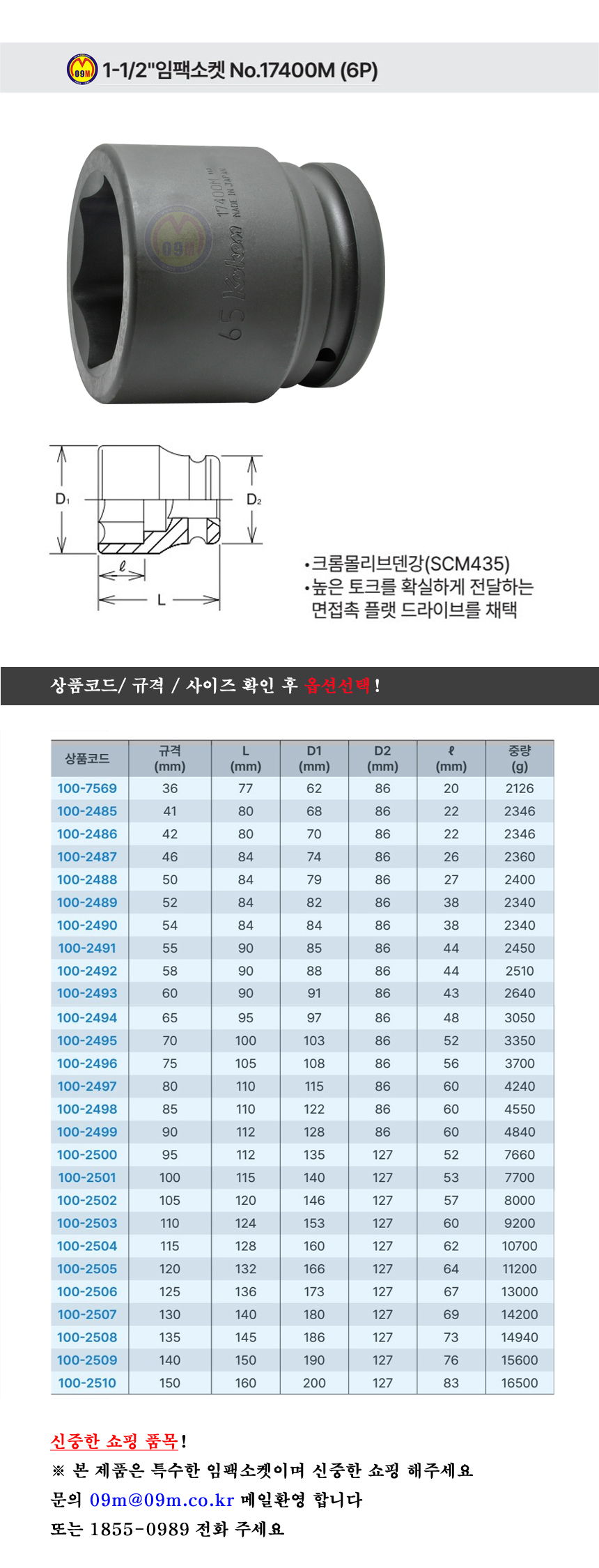 코켄 임팩소켓 17400M 6P 1-1/2x(130mm-150mm) KOKEN, 대형소켓 100-2508