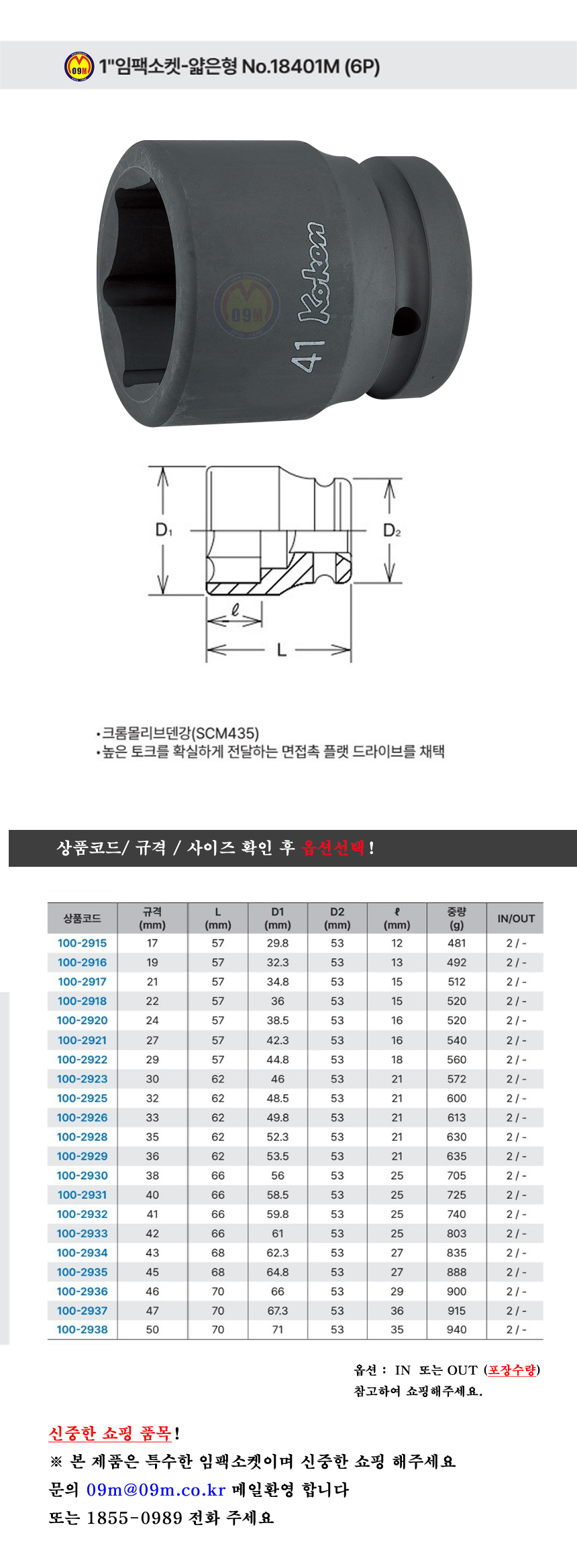 코켄 임팩소켓 얇은형 18401M 6P 1inchx(41mm-50mm) KOKEN, 대형소켓 100-2932